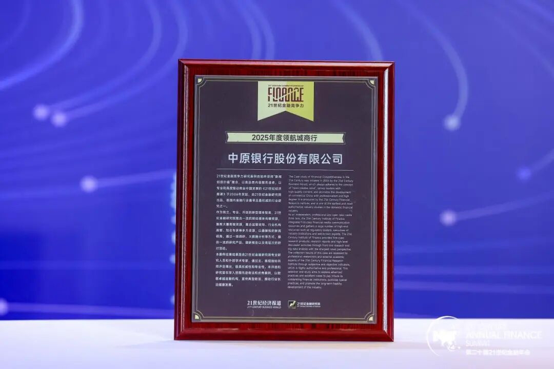 中原銀行獲“2025年度領航城商行”等榮譽稱號